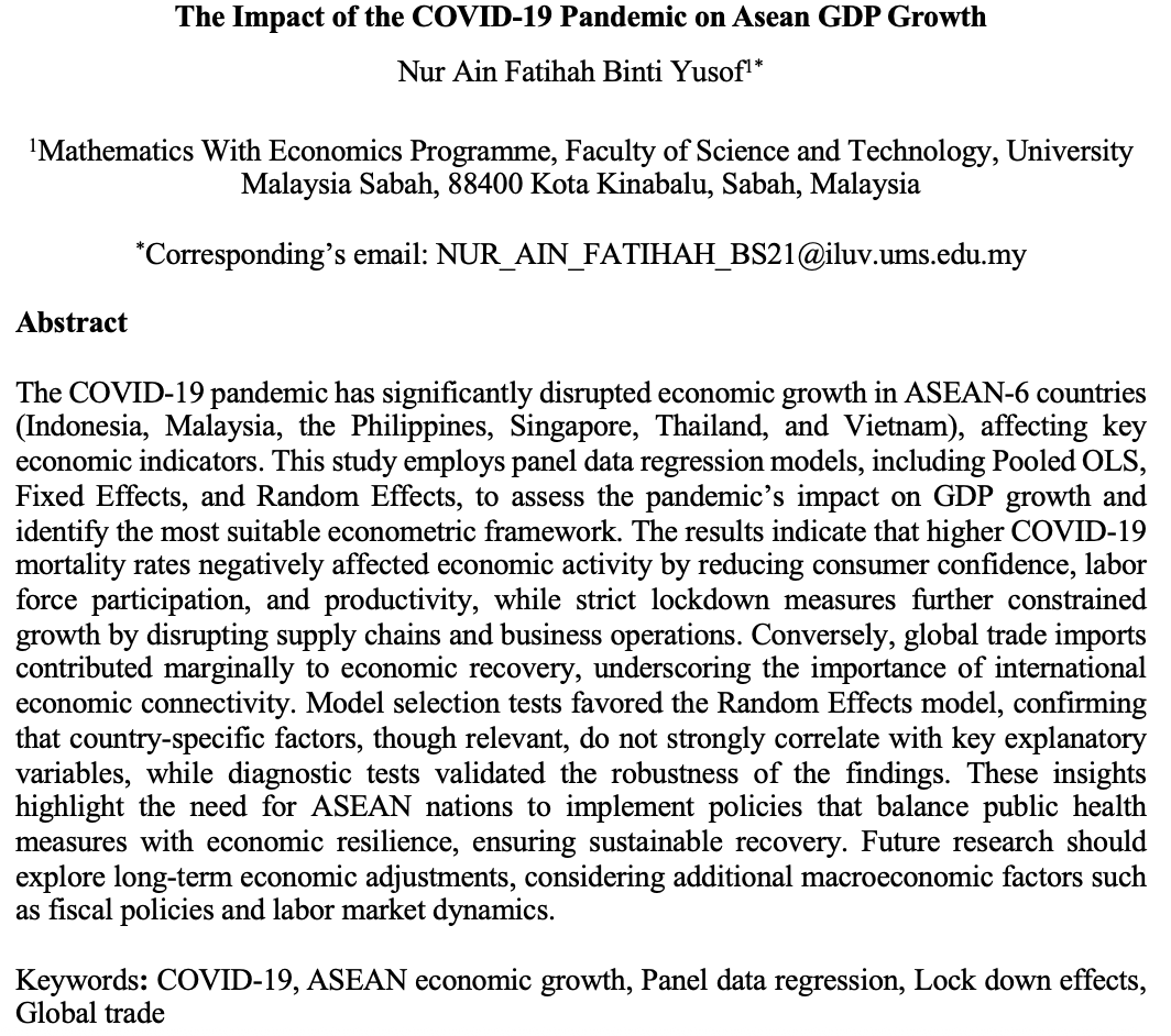 Bridging Science and Society: A Compilation of Abstracts in Mathematics, Statistics, and Economics Copyright © by Sarimah Surianshah; Assis kamu; Ho Chong Mun; Jumat Sulaiman; Aini Janteng; Siti Rahayu Mohd Hashim; Darmesah Gabda; Khadizah Ghazali; and Suriani Hassan is licensed under a Creative Commons Attribution-NonCommercial-ShareAlike 4.0 International License, except where otherwise noted.