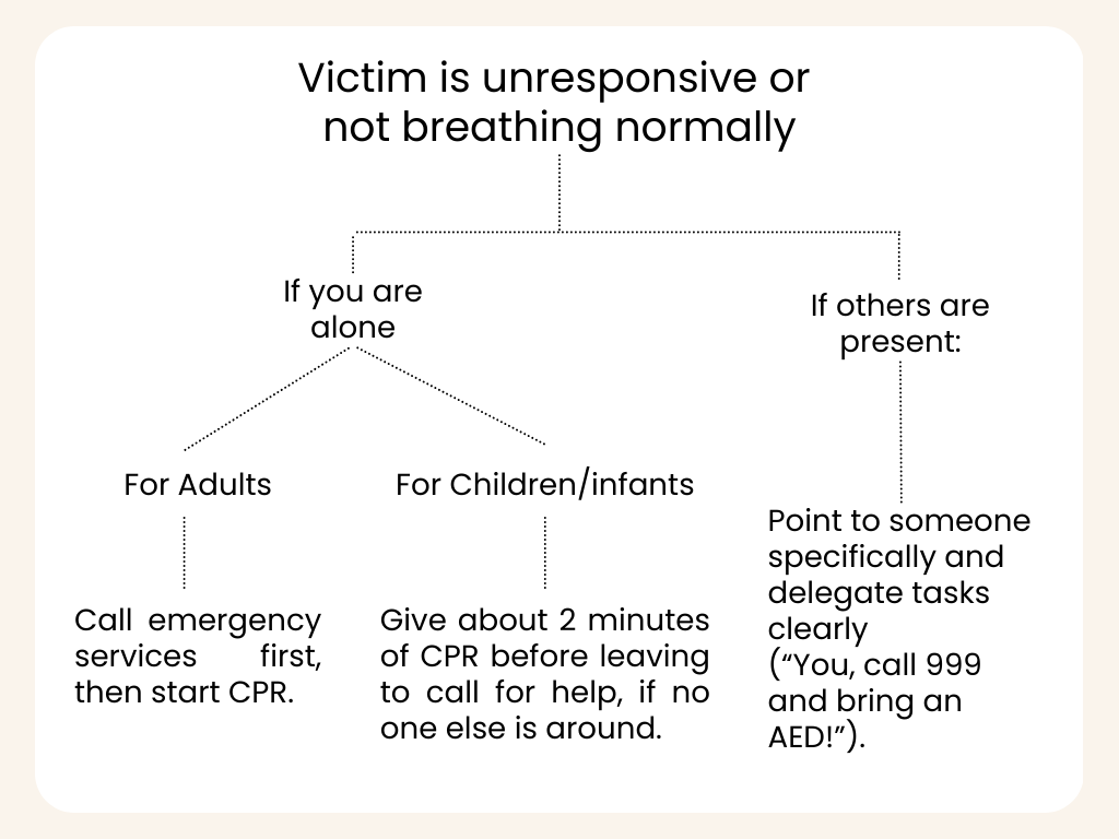 • If breathing is absent or abnormal → treat as not breathing normally.